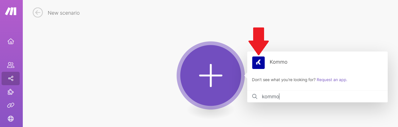 Digite Kommo para localizar a plataforma e logo após clique em Kommo para abrir a integração.