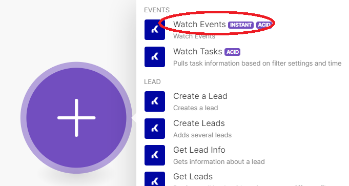 Clique na parte direita do Watch Events para criar um novo módulo.