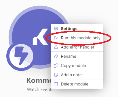 Clique com o botão direito no módulo Watch Events e depois selecione: Run this module only.