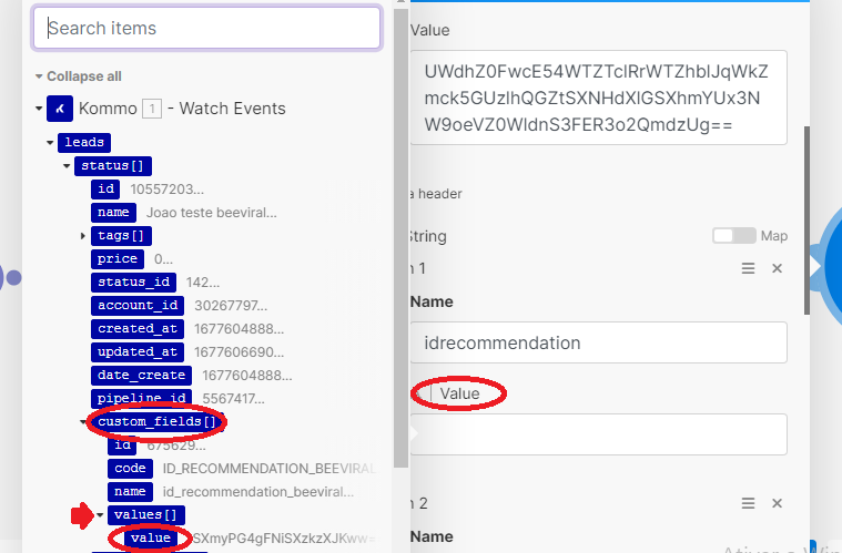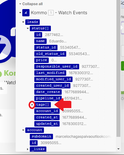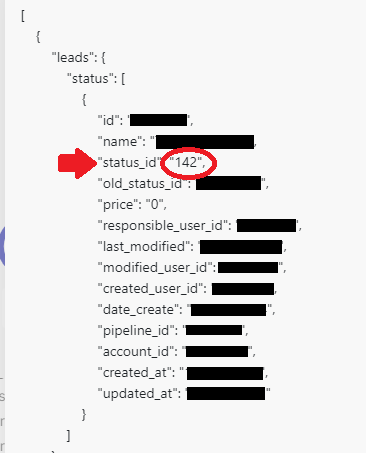 Obs: Para saber qual é o número do ID, vá no módulo Watch Events e clique na parte de cima a direira onde está um número que significa a resposta que retornou do Kommo CRM.