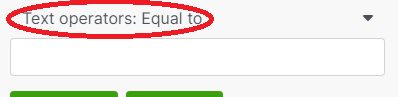Em Text Operators selecione: Equal to, que é a condição a ser utilizada para comparar o campo de cima com o de baixo.