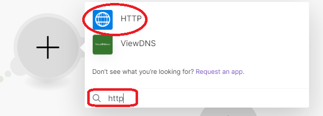 Clique em + para abrir o combo de aplicações a ser escolhido