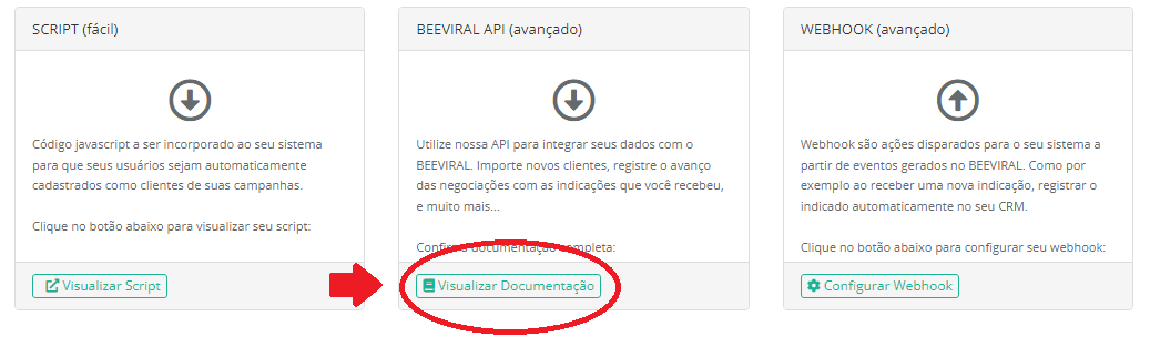Na opção Beeviral API (avançado), clique em Visualizar Documentação.