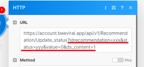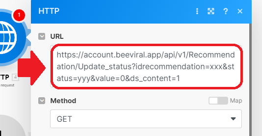 Antes de prosseguir, teremos que editar a URL para poder colocar o idrecommendation e o status.