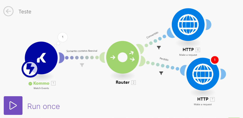Siga os passos para configurar o procedimento do Fluxo completo de Volta na Plataforma Make para integração com o Komo CRM.